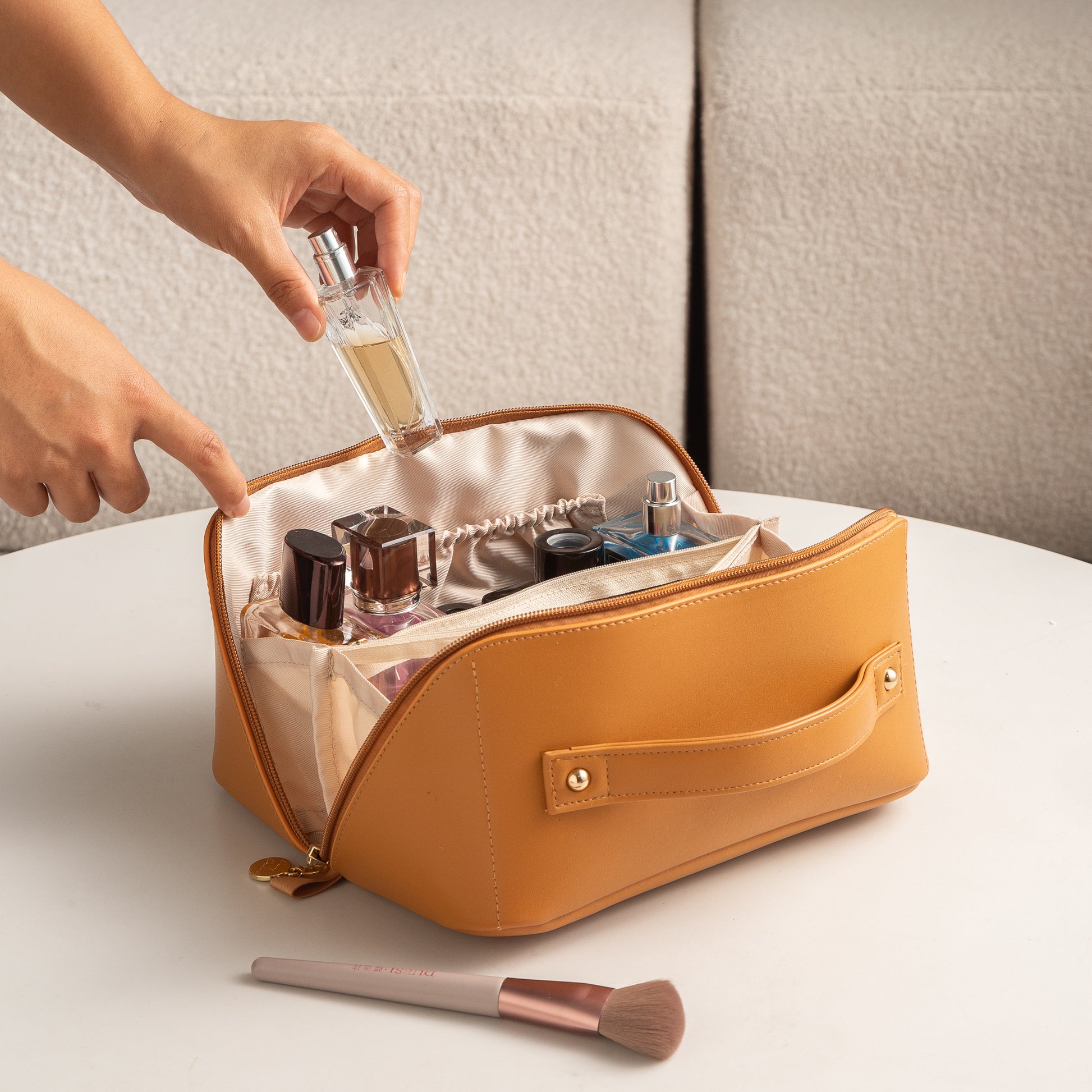 Whether resting on your vanity, tucked in your tote, or traveling with you, The Essential keeps your favorites beautifully organized and always within reach. Simple, versatile, and undeniably chic, it’s the must-have bag every modern woman deserves.